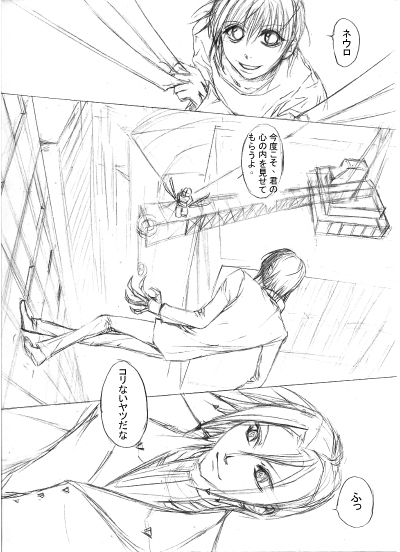 ※四コマとあとがきがここに含まれておりません。 上記の絵のリンクは仕上げ前に鉛筆を消してなかったけど、 吹き出しも日本語の台詞を入れてた。 表記の中にページのナンバーをクリックして閲覧をできます。 詳細は後ほどここにお知らせしておりますが、どうぞご期待ください。 画面中に台詞を見えなかったら、リロードしてください。 ◎お問い合わせ 皆さまからの応援メッセージ待ってます! 本サイトに対するご意見・ご感想・通販のことも ehzezo@gmail.comまでお願いします。 (日本語もちろん大歓迎です) ◎日本国内の通販ご案内----> 未だオープン ◎台灣地區的購買方式---->已完售 ◎港澳地區的購買方式---->未開放 ※Qui?的簡單介紹---->click here [ 新刊概要 ] 彼氏を募集中の叶繪が彌子の名義でみんなを誘い出したのだ! 一体どんな事が起きるのか?! 日本語の見本:ココにクリックしてください。 下記の絵のリンクは仕上げ前に鉛筆を消してなかった、 吹き出しも空白状態で、しかも中国語の解説のものです。 クリック クリック ★2010年 7月24日:中文版 初次販售。 ★2012年 10月7日:日本語版 品切だ。