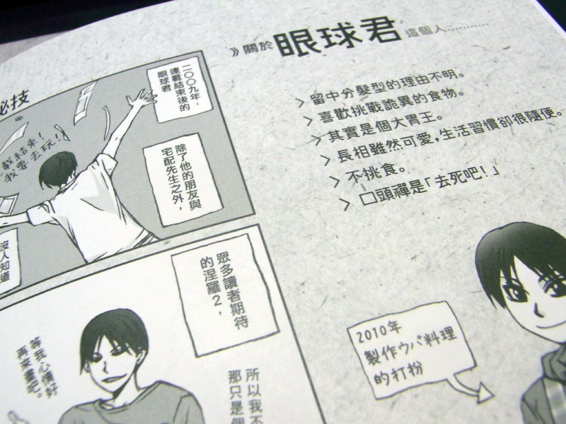 CWT 30 ![]() 第一天攤位:D80 第二天攤位:D80 座位配置圖 SEAT MAP 預定販售物 ---------- 2011年 2月4日-2月5日台大綜合體育館1F / 3F FF 19 ![]() 第一天攤位:J25,J26 座位配置圖 SEAT MAP 預定販售物 --------- 2011年 3月17日-3月18日 台中市文化創意產業園區-國際展演廳 GJ 7 ![]() 第一天攤位:C04 第二天攤位:C04 座位配置圖 Day 1 Day 2 預定販售物 --------- 2011年 4月7日-4月8日高雄市勞工中心禮堂 CWT K10 ![]() 第二天攤位:B17 座位配置圖 SEAT MAP 預定販售物 --------- 2012年1月12日 眼球本的試閱小冊終於送印了(攤) 話說這個次的位置真的是讓我嚇了一跳, 竟然被分配到角落攤,主辦真的是太看得起我了... 配合這次的眼球本新刊,在去年夏季場發送的推廣OTOZAK套組, 這次改為強迫中獎的方式進行→買眼球本送扇子套組。 請好好認識眼球君(菌)的朋友吧w 2012年1月20日 眼球本的試閱小冊終於趕上過年前交件給我了~(淚目) 想看實品照片的各位,請點右邊連結→1、2 2012年1月26日 O先生的扇子套組還有喔~庫存大約有130組左右, 我會帶去CWT30的會場的~ 想要索取的人,請把握機會喔 ![]() 2012年2月1日 雖然很突然,還是要先跟各位說一下, 週六的FF我只會去上午...... 報名的時候並不知道2月4日當天要補上班(汗) 最近因為取材和趕本子的事,替同事和主管添了不少麻煩, 想說不能再這樣了。 所以FF雖然會擺攤,不過我只會出現在上午, 下午由朋友代為顧攤,想找我的話,要趁上午喔~